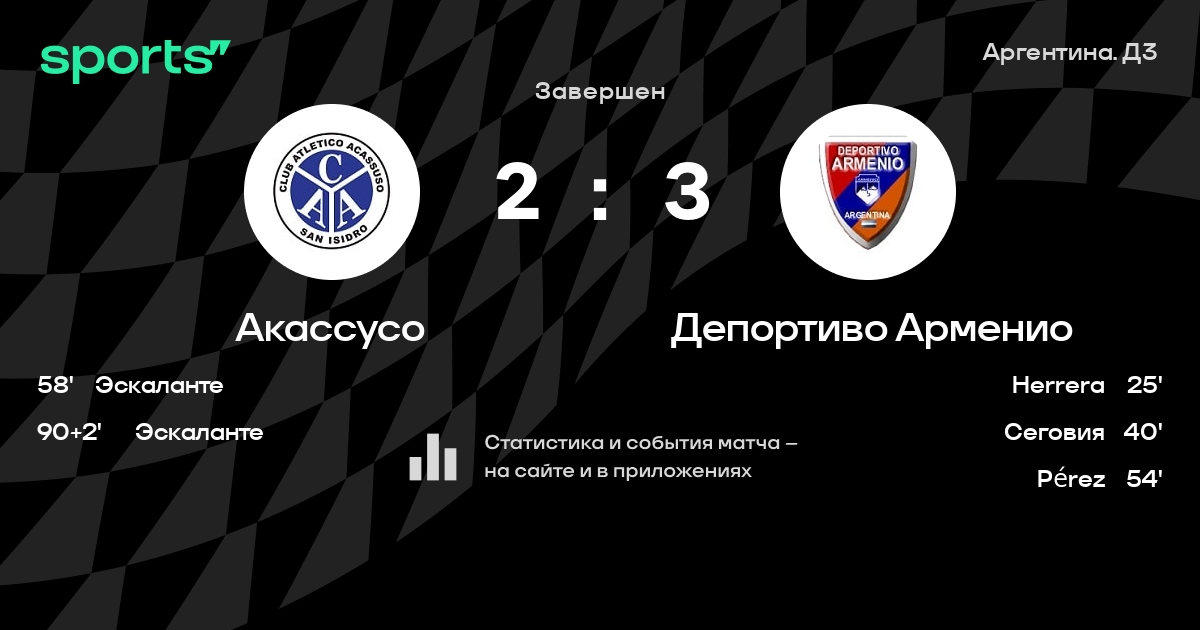 Результат прошлой игры в турнире «Примера B»: Сан-Мартин де Бурсако – Акассусо 2:0. После 20 туров Акассусо набирает 34 очков и занимает 4 место в турнире. Лучший бомбардир команды – Давид Эскаланте: он забил 8 в 26 матчах. Акассусо проигрывает в 3 последних матчах в рамках турнира «Примера B». Акассусо пропускает в 3 последних матчах в турнире «Примера B». В последних 5 играх Акассусо забивает 5 голов. В последних 5 играх Акассусо пропускает 9 голов.