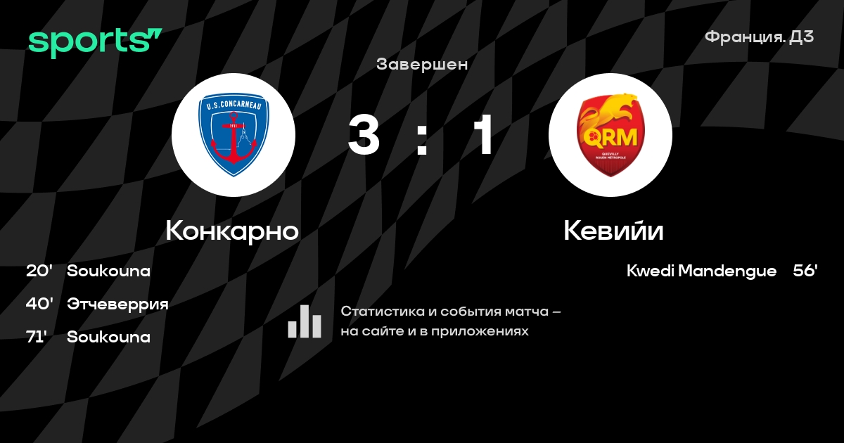 Конкарно – Кевийи: Конкарно забивает в 6 из 8 последних матчей против этого соперника