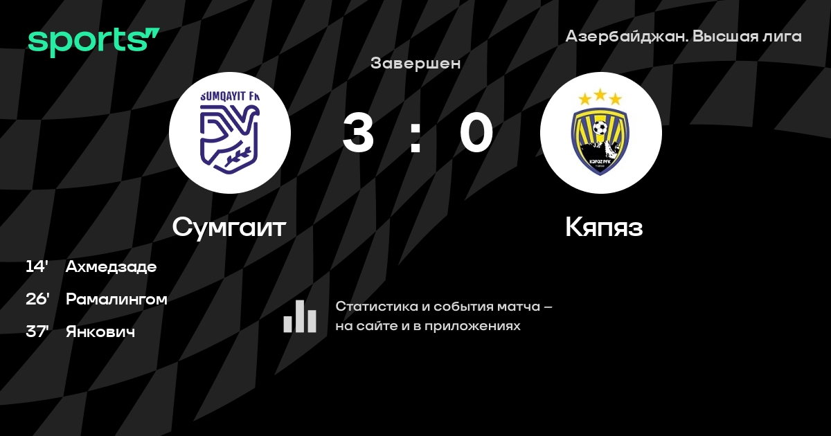 Дженетов - Сенхаджи, Педру Пинту, Süleymanlı, Abdoul Rachid Moumini - Кахат, Янкович, Абдуллазаде, Васкес - Ахмедзаде, РамалингомЗапасные: Fərzullayev, Arixov, Orucov, Paşayev, Resende Alvim, Feyziyev, Рустемли, Əhmədzadə, Murata, Əliyev, Гулиев, Нинкович