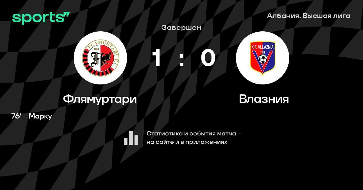 Результат прошлой игры в турнире «Суперлига»: Теута – Флямуртари 3:2. После 8 туров Флямуртари набирает 2 очков и занимает 10 место в турнире. Лучший бомбардир команды – Сами Бурар: он забил 2 в 6 матчах. Флямуртари проигрывает в 5 последних матчах в рамках турнира «Суперлига». Влазния имеет в активе больше всех побед в турнире – 6. Флямуртари пропускает в 8 последних матчах в турнире «Суперлига». В последних 5 играх Флямуртари забивает 8 голов. В последних 5 играх Флямуртари пропускает 8 голов.