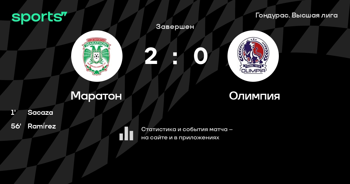Результат прошлой игры в турнире «Высшая лига»: Оланчо – Маратон 1:1. После 6 туров Маратон набирает 11 очков и занимает 2 место в турнире. Лучший бомбардир команды – Алекси Вега: он забил 7 в 5 матчах. Маратон не проигрывает в 3 последних матчах в рамках турнира «Высшая лига». Олимпия имеет в активе больше всех побед в турнире – 4. В 3 последних матчах в турнире «Высшая лига» Маратон обязательно забивает. В последних 5 играх Маратон забивает 12 голов. В последних 5 играх Маратон пропускает 5 голов.