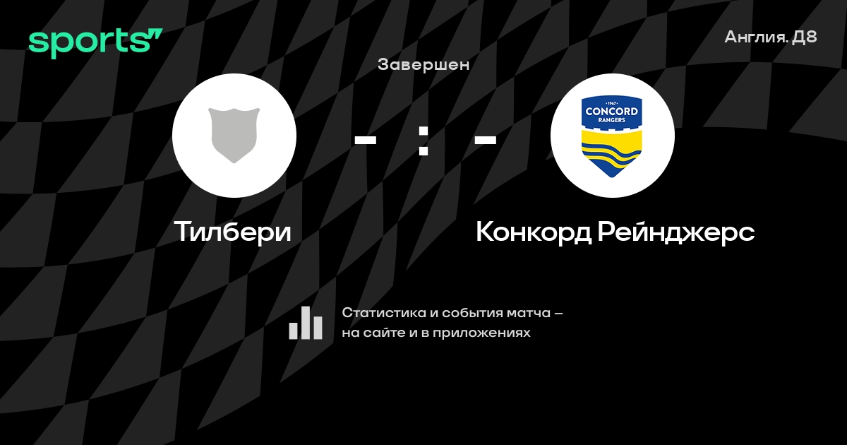 Тилбери – Конкорд Рейнджерс: коэффициенты