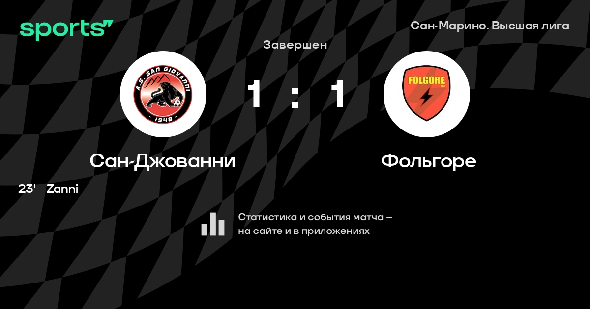 Результат прошлой игры в турнире «Высшая лига»: Мурата – Сан-Джованни 0:0. После 9 туров Сан-Джованни набирает 6 очков и занимает 12 место в турнире. Лучший бомбардир команды – F. Boldrini: он забил 1 в 4 матчах. В последних 5 играх Сан-Джованни забивает 4 голов. В последних 5 играх Сан-Джованни пропускает 8 голов.