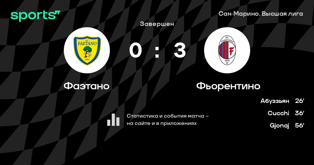 | 1 | Тре Фиори | 13 | 10 | 3 | 0 | 28 | 5 | +23 | 33 | ||