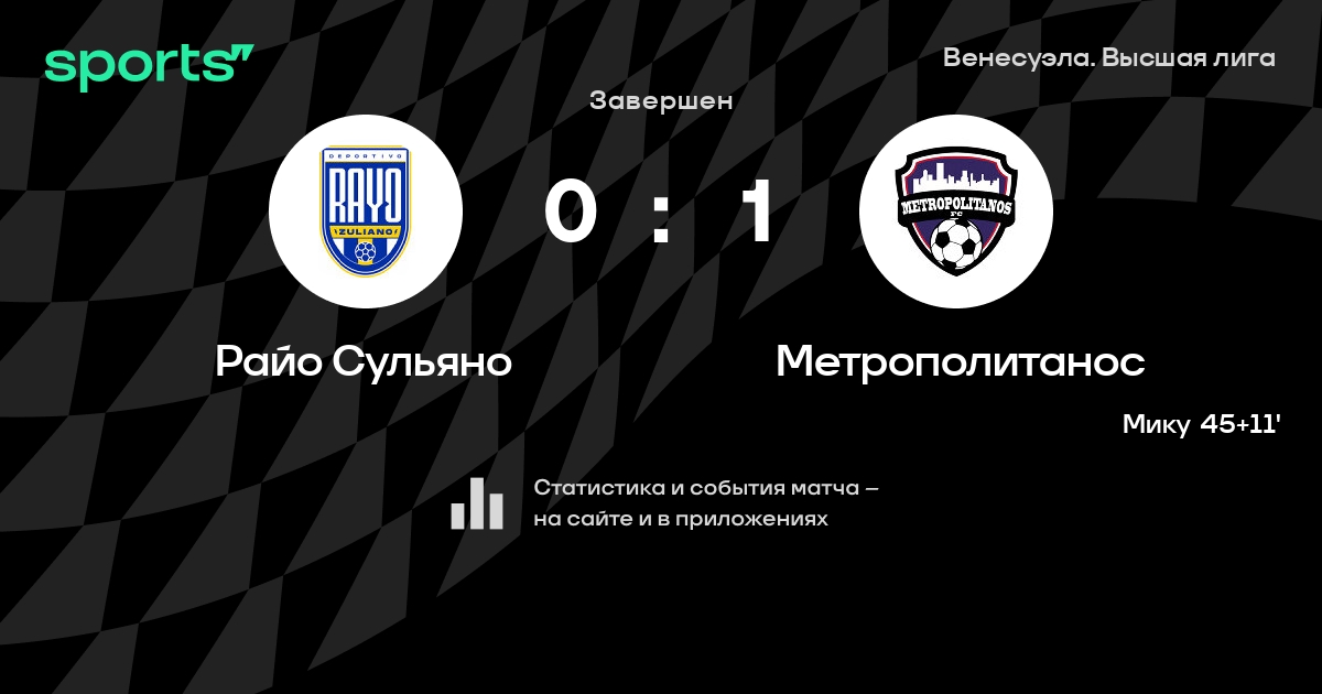 Результат прошлой игры в турнире «Примера»: УСВ – Райо Сульяно 3:0. После 13 туров Райо Сульяно набирает 14 очков и занимает 11 место в турнире. Лучший бомбардир команды – Саймон Рамирес: он забил 3 в 12 матчах. Райо Сульяно пропускает в 5 последних матчах в турнире «Примера». В последних 5 играх Райо Сульяно забивает 3 голов. В последних 5 играх Райо Сульяно пропускает 8 голов.