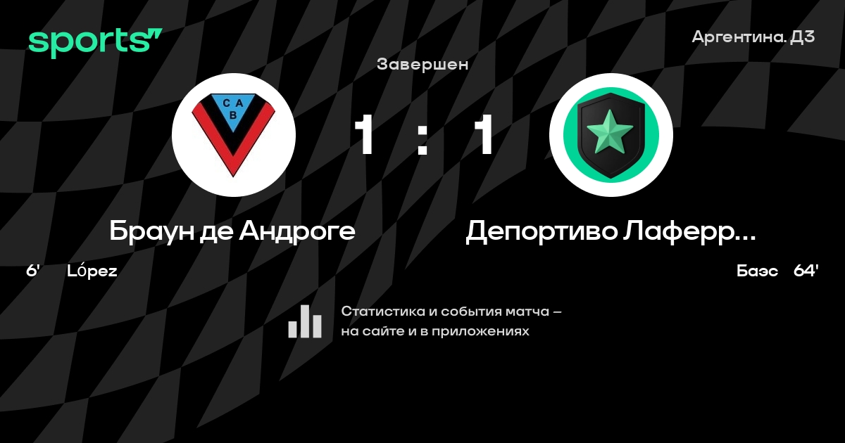 Результат прошлой игры в турнире «Примера B»: Линьерс – Браун де Андроге 2:1. После 20 туров Браун де Андроге набирает 28 очков и занимает 8 место в турнире. Лучший бомбардир команды – Хонатан Каньете: он забил 8 в 33 матчах. Браун де Андроге проигрывает в 3 последних матчах в рамках турнира «Примера B». Браун де Андроге пропускает в 3 последних матчах в турнире «Примера B». В последних 5 играх Браун де Андроге забивает 2 голов. В последних 5 играх Браун де Андроге пропускает 5 голов.