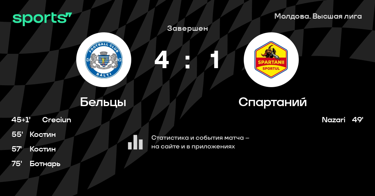 Бельцы – Спартаний: Бельцы не проигрывает в 7 последних матчах против этого соперника