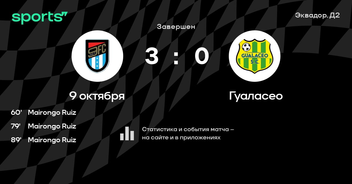9 октября – Гуаласео: Гуаласео не проигрывает в 8 из 10 последних матчей против этого соперника