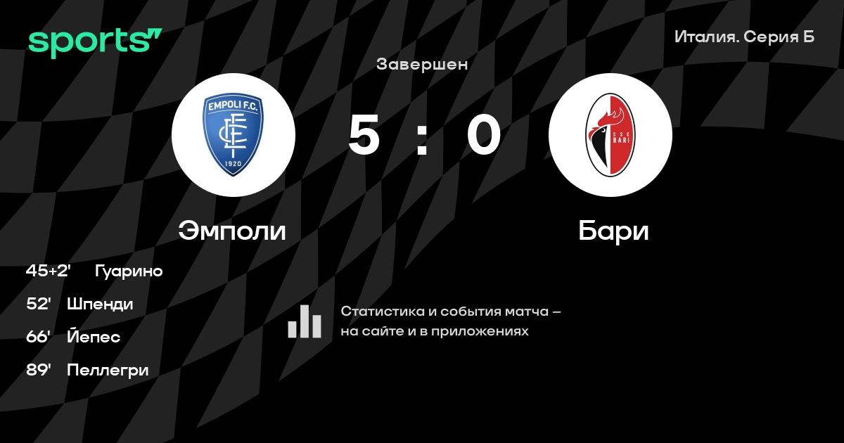 Результат прошлой игры в турнире «Серия B»: Бари – Фрозиноне 2:3. После 12 туров Бари набирает 13 очков и занимает 16 место в турнире. Лучший бомбардир команды – Габриэль Мончини: он забил 5 в 13 матчах. В 8 последних матчах в турнире «Серия B» Бари обязательно забивает. В последних 5 играх Бари забивает 6 голов. В последних 5 играх Бари пропускает 7 голов.