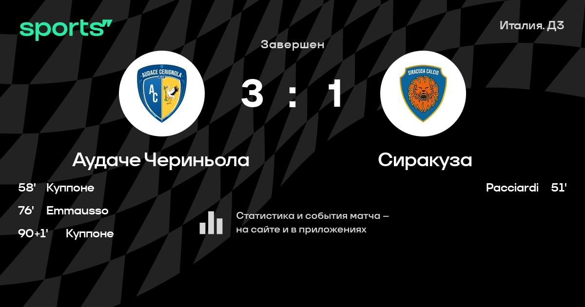Трансляция Аудаче Чериньола - Сиракуза