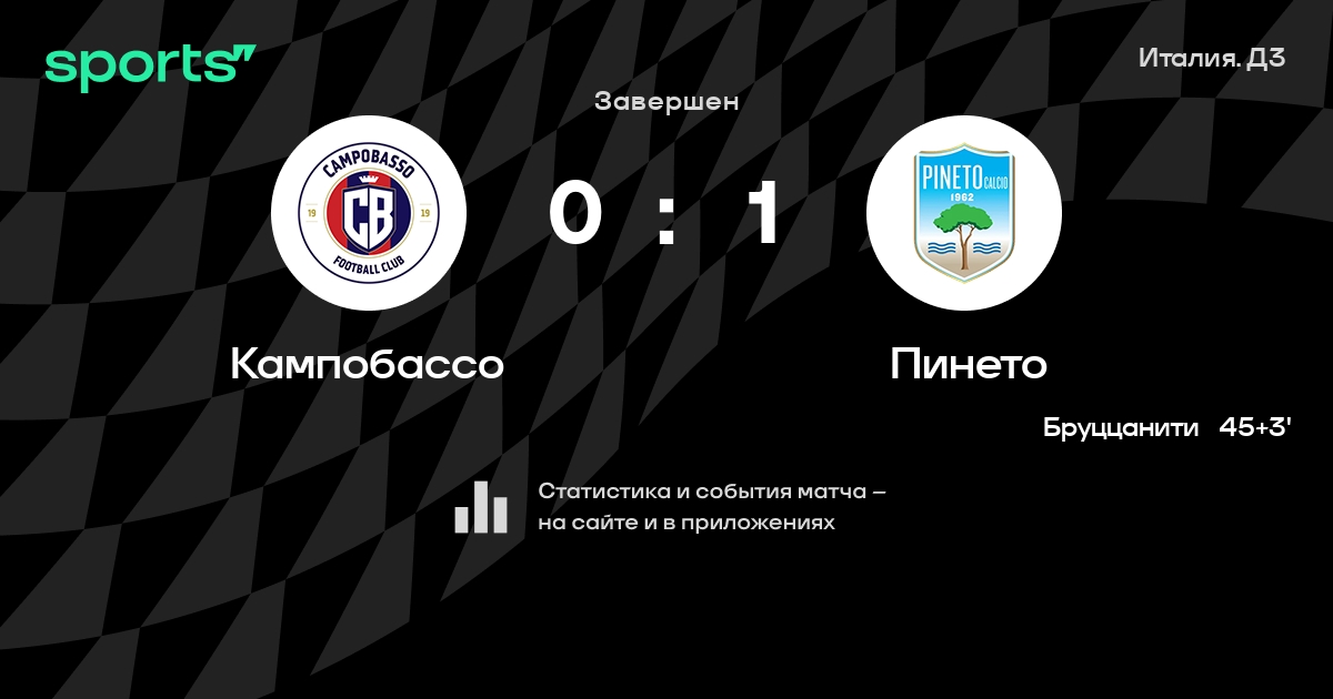 Результат прошлой игры в турнире «Серия С»: Карпи – Кампобассо 2:2. После 3 туров Кампобассо набирает 4 очков и занимает 10 место в турнире. Лучший бомбардир команды – V. Leonetti: он забил 1 в 1 матчах. В 3 последних матчах в турнире «Серия С» Кампобассо обязательно забивает. Кампобассо пропускает в 10 последних матчах в турнире «Серия С». В последних 5 играх Кампобассо забивает 9 голов. В последних 5 играх Кампобассо пропускает 7 голов.