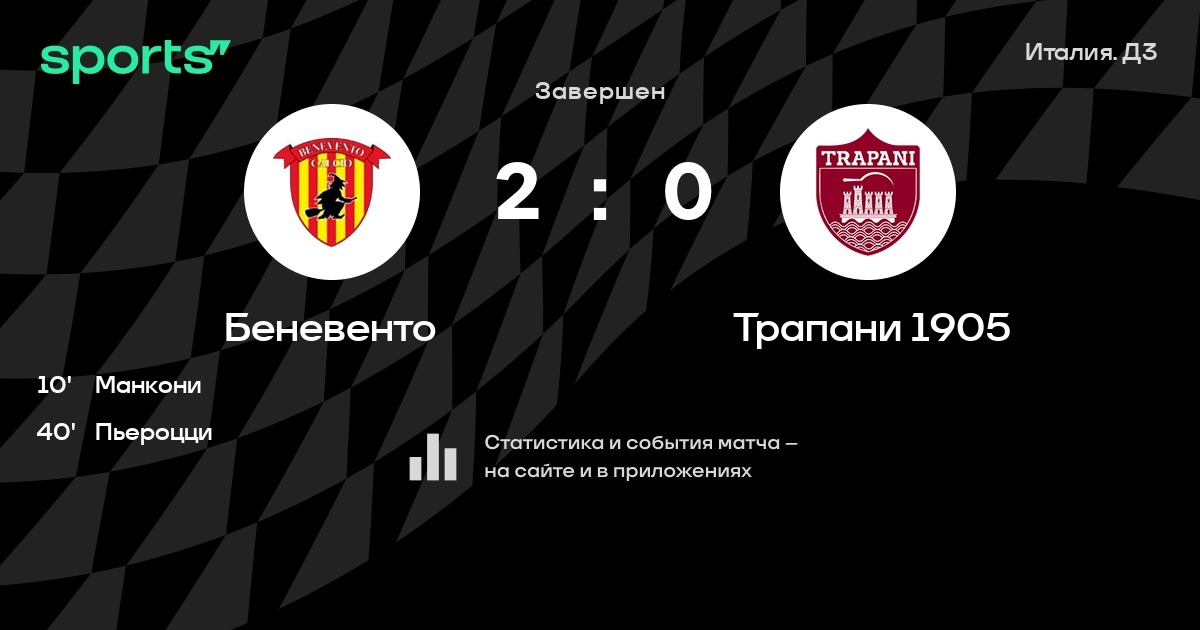 Результат прошлой игры в турнире «Серия С»: Пичерно – Беневенто 2:2. После 6 туров Беневенто набирает 13 очков и занимает 2 место в турнире. Лучший бомбардир команды – F. Salvemini: он забил 6 в 5 матчах. Беневенто не проигрывает в 3 последних матчах в рамках турнира «Серия С». В 3 последних матчах в турнире «Серия С» Беневенто обязательно забивает. В последних 5 играх Беневенто забивает 9 голов. В последних 5 играх Беневенто пропускает 4 голов.