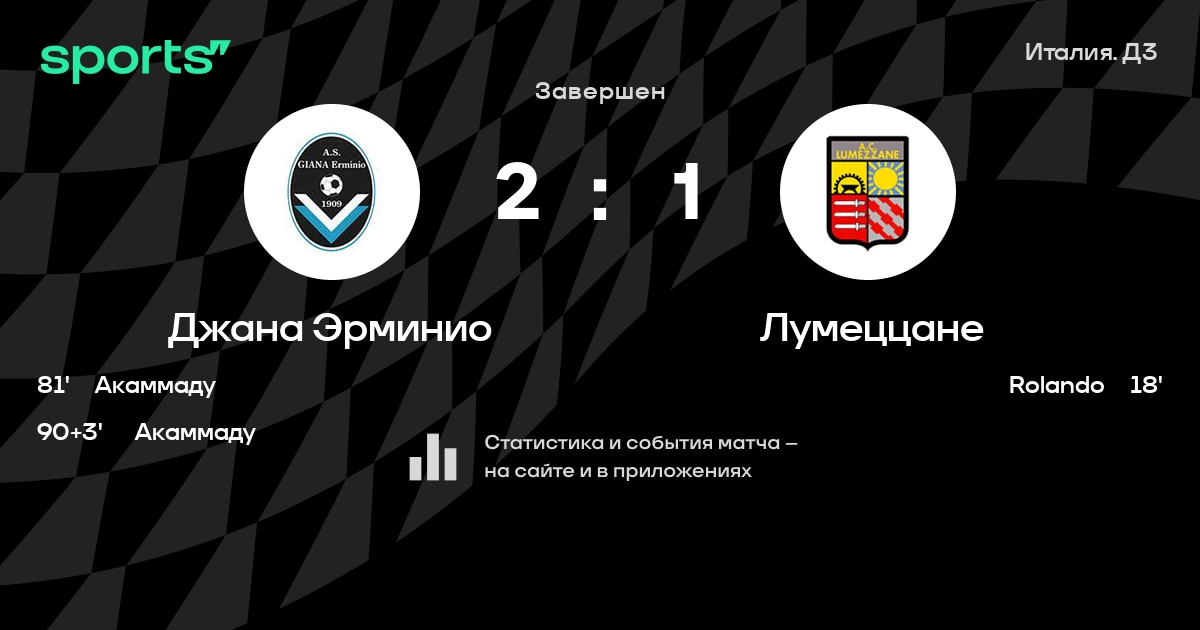 Джана Эрминио – Лумеццане: Джана Эрминио не проигрывает в 8 из 10 последних матчей против этого соперника