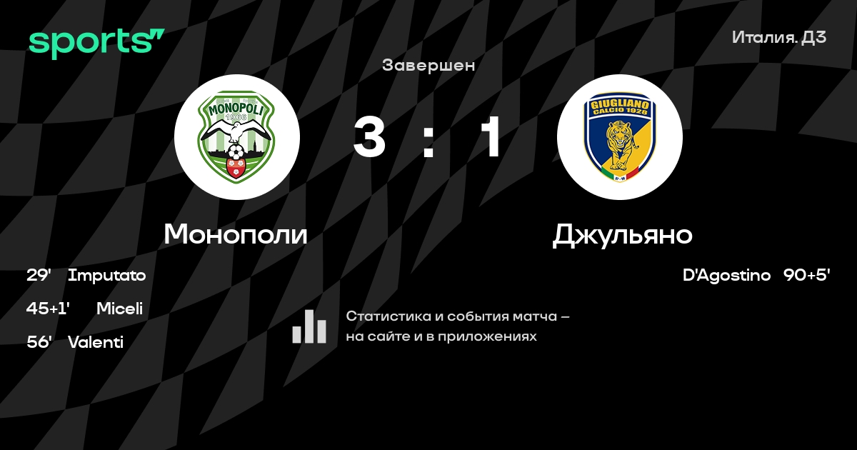 Монополи – Джульяно: Монополи забивает в 6 последних матчах против этого соперника