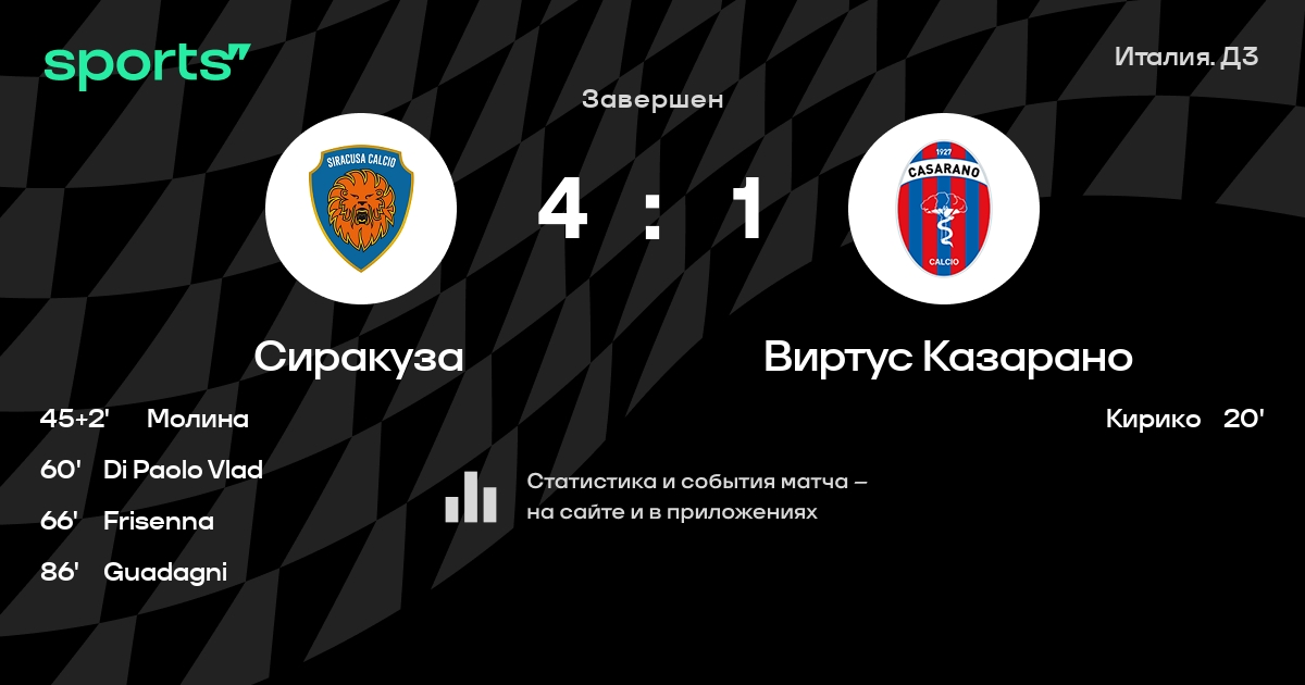 Сиракуза – Виртус Казарано: коэффициенты
