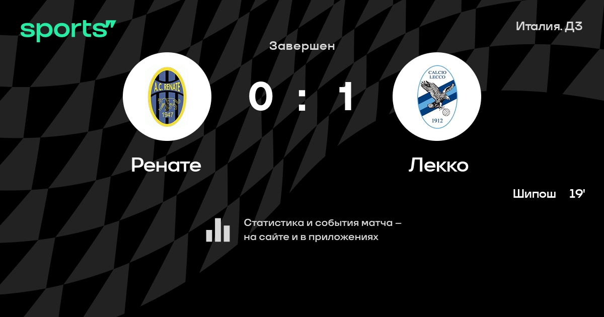 Результат прошлой игры в турнире «Серия С»: Интер-2 – Ренате 1:1. После 10 туров Ренате набирает 13 очков и занимает 6 место в турнире. Лучший бомбардир команды – A. Delcarro: он забил 2 в 1 матчах. Ренате не проигрывает в 3 последних матчах в рамках турнира «Серия С». В последних 5 играх Ренате забивает 4 голов. В последних 5 играх Ренате пропускает 6 голов.
