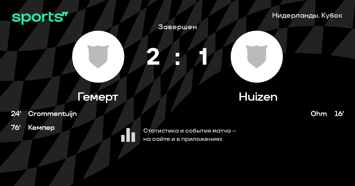 В последних 5 играх Huizen забивает 5 голов. В последних 5 играх Huizen пропускает 9 голов.