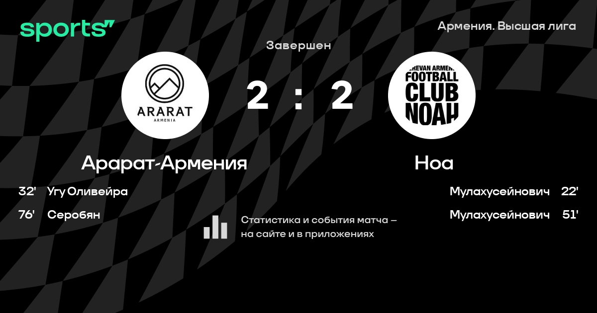 Арарат-Армения – Ноа: Ноа побеждает в 6 последних очных матчах