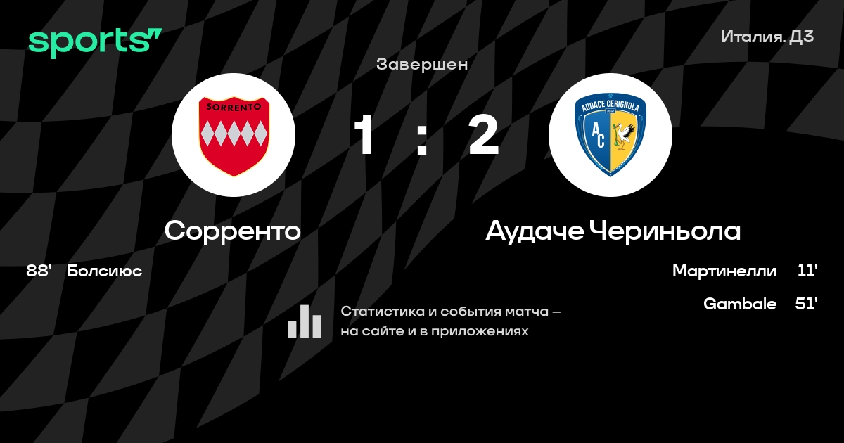 Сорренто – Аудаче Чериньола: Аудаче Чериньола забивает в 6 последних матчах против этого соперника