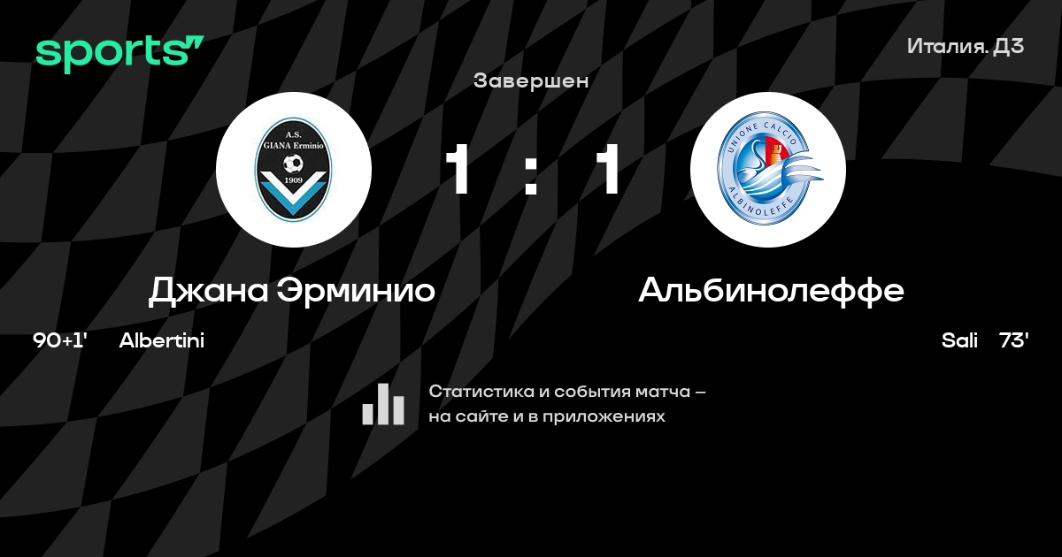 Результат прошлой игры в турнире «Серия С»: Виченца – Джана Эрминио 2:1. После 12 туров Джана Эрминио набирает 12 очков и занимает 16 место в турнире. Лучший бомбардир команды – Франклин Акаммаду: он забил 2 в 7 матчах. Джана Эрминио не может выиграть в 4 последних матчах в рамках турнира «Серия С». В последних 5 играх Джана Эрминио забивает 4 голов. В последних 5 играх Джана Эрминио пропускает 4 голов.