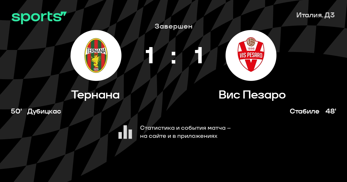 Результат прошлой игры в турнире «Серия С»: Губбио – Тернана 3:3. После 12 туров Тернана набирает 19 очков и занимает 7 место в турнире. Лучший бомбардир команды – Эдгарас Дубицкас: он забил 5 в 8 матчах. Тернана не проигрывает в 5 последних матчах в рамках турнира «Серия С». В 5 последних матчах в турнире «Серия С» Тернана обязательно забивает. В последних 5 играх Тернана забивает 8 голов. В последних 5 играх Тернана пропускает 6 голов.