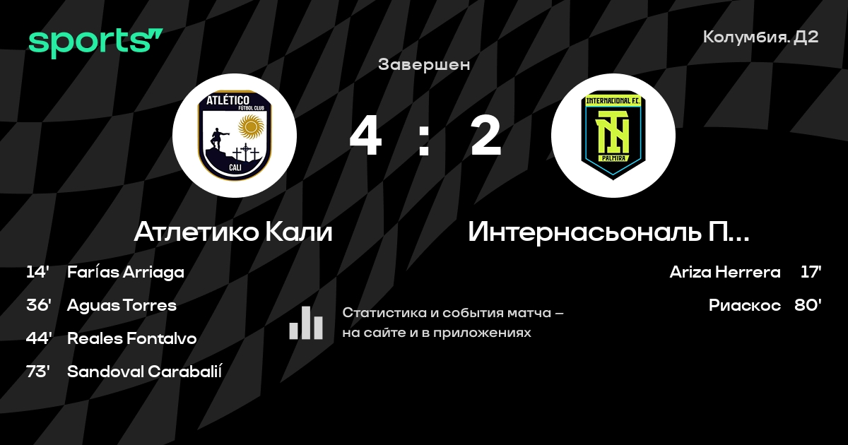 Трансляция Атлетико Кали - Интернасьональ Пальмира