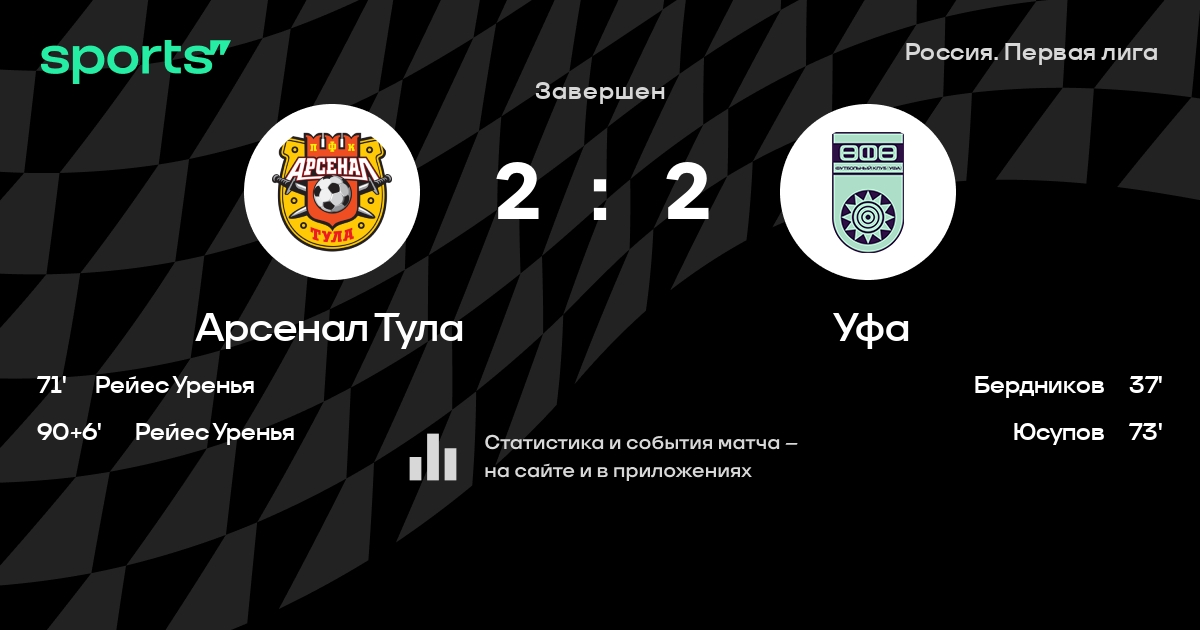 Результат прошлой игры в турнире «Первая лига»: Арсенал Тула – Спартак Кострома 1:2. После 10 туров Арсенал Тула набирает 13 очков и занимает 9 место в турнире. Лучший бомбардир команды – Амур Калмыков: он забил 7 в 10 матчах. Арсенал Тула пропускает в 4 последних матчах в турнире «Первая лига». В последних 5 играх Арсенал Тула забивает 8 голов. В последних 5 играх Арсенал Тула пропускает 6 голов.