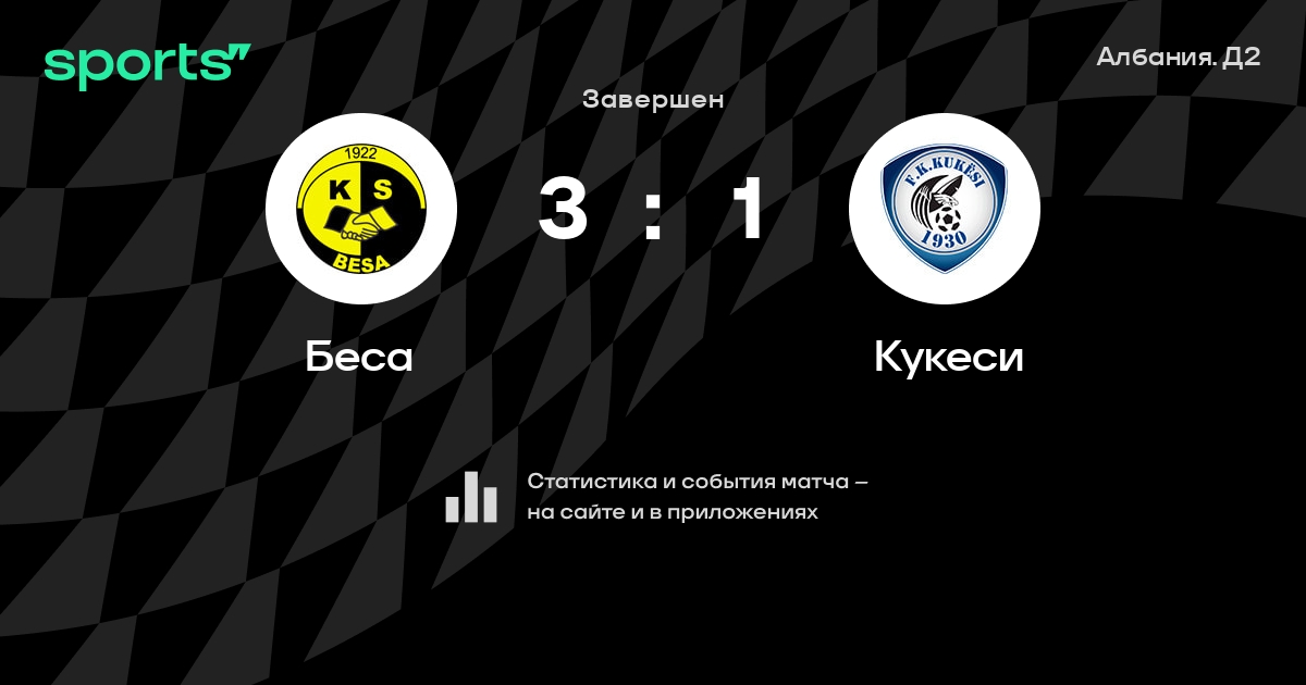Результат прошлой игры в турнире «Первая лига»: Скендербеу – Беса 1:0. После 8 туров Беса набирает 4 очков и занимает 11 место в турнире. Лучший бомбардир команды – G. Chinwendu: он забил 2 в 6 матчах. Беса не может выиграть в 9 последних матчах в рамках турнира «Первая лига». Беса пропускает в 5 последних матчах в турнире «Первая лига». В последних 5 играх Беса забивает 8 голов. В последних 5 играх Беса пропускает 5 голов.