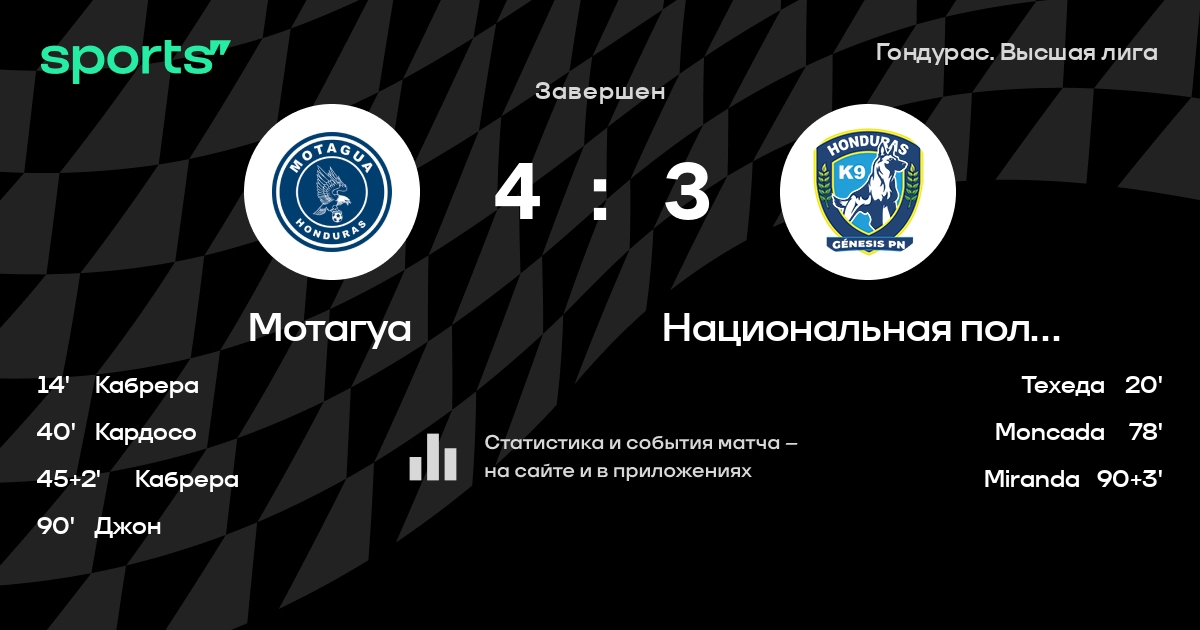 Ararat Balanta - Антонио, Габриэл Араужо, Сантос - Maldonado, Кастельянос - Cristopher Aaron Fonseca Lecheler, Juan Sebastián Riascos Colorado, Техеда, Flores, Heber Jafet Núñez RamírezЗапасные: Rodríguez Hernández, Sanchez Rivera, Ньето, Ramos Mass, Palma Rivas, Palomo, Rodríguez Nuñez, Salazar Ruiz, Moncada, Arzú Suazo, Mármol Suazo, Miranda Miguel