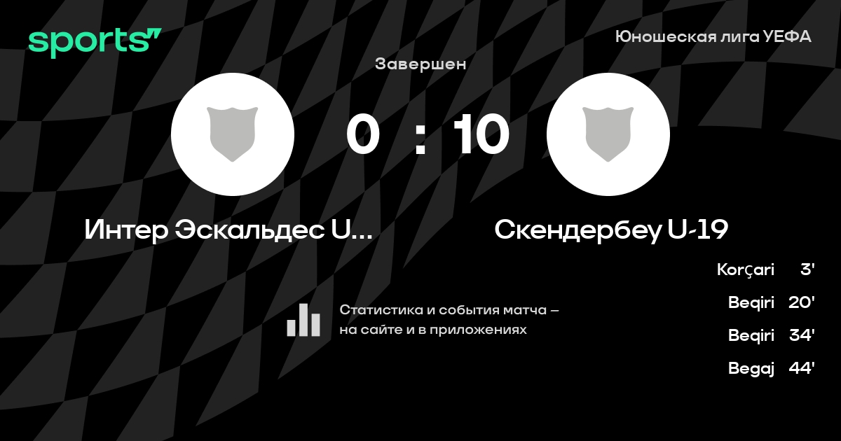Трансляция Интер Эскальдес U-19 - Скендербеу U-19