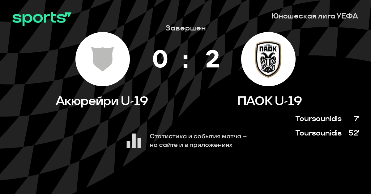Результат прошлой игры в турнире «Юношеская лига УЕФА»: Акюрейри U-19 – Елгава U-19 1:0.