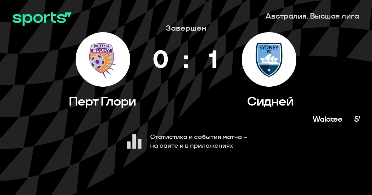 Результат прошлой игры в турнире «Лига А»: Перт Глори – Вестерн Сидней 1:0. После 7 туров Перт Глори набирает 10 очков и занимает 5 место в турнире. Лучший бомбардир команды – Николас Пеннингтон: он забил 2 в 5 матчах. Перт Глори побеждает в 3 последних матчах в рамках турнира «Лига А». В 3 последних матчах в турнире «Лига А» Перт Глори обязательно забивает. В последних 5 играх Перт Глори забивает 5 голов. В последних 5 играх Перт Глори пропускает 4 голов.