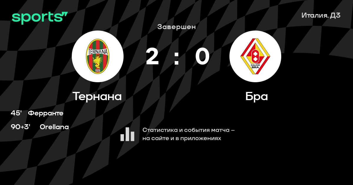 Результат прошлой игры в турнире «Серия С»: Перуджа – Тернана 1:2. После 16 туров Тернана набирает 19 очков и занимает 12 место в турнире. Лучший бомбардир команды – Эдгарас Дубицкас: он забил 6 в 13 матчах. В 3 последних матчах в турнире «Серия С» Тернана обязательно забивает. В последних 5 играх Тернана забивает 11 голов. В последних 5 играх Тернана пропускает 5 голов.