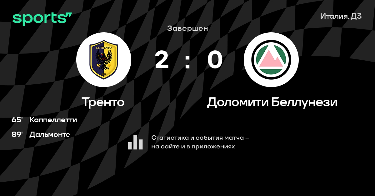 Тренто - Доломити Беллунези: онлайн-трансляция