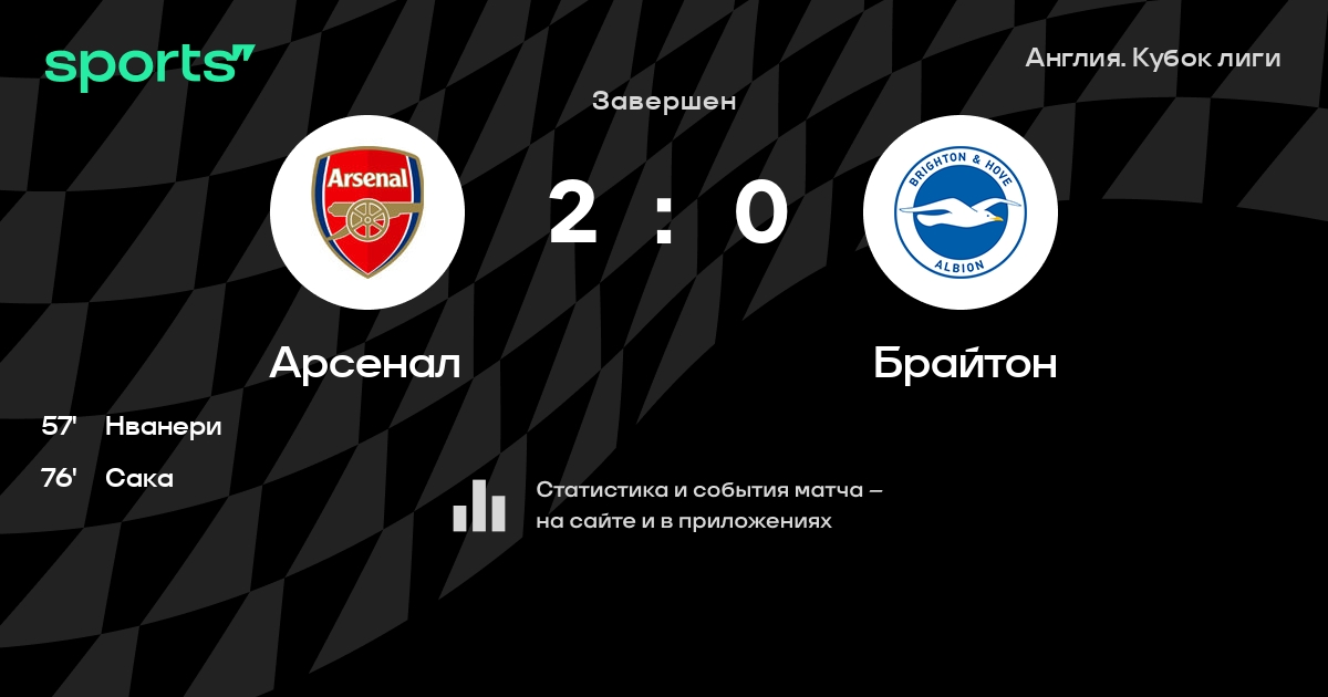 Кубок лиги: шансы «Арсенала» и «Брайтона» на победу в матче 1/8 финала