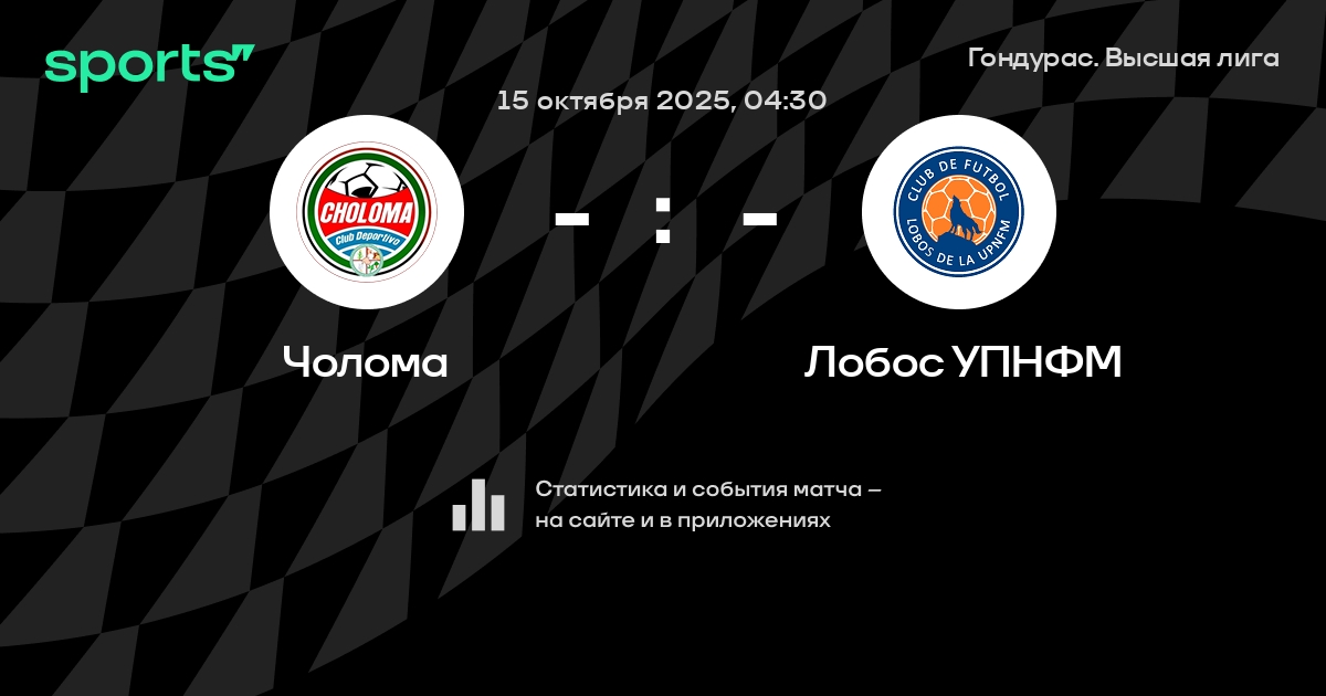 Результат прошлой игры в турнире «Высшая лига»: Олимпия – Чолома 2:0. Лучший бомбардир команды – A. Alvarado: он забил 3 в 9 матчах. Чолома пропускает в 20 последних матчах в турнире «Высшая лига». В последних 5 играх Чолома забивает 4 голов. В последних 5 играх Чолома пропускает 13 голов.