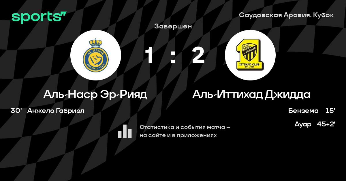 Райкович - Митай, Данилу Перейра, Аль-Муса, Ahmed bin Yousef bin Ahmed Al Julaydan - Диаби, Фабиньо, Ауар, Канте, Фернандеш - БенземаЗапасные: Al Absi, Аль-Шангити, Аль-Шенгити, Аль-Скурк, Аль-Гамди, Аль-Нашри, Аль-Гамди, Аль-Биши, Аль-Гамди, Аль-Шехри, Бергвейн
