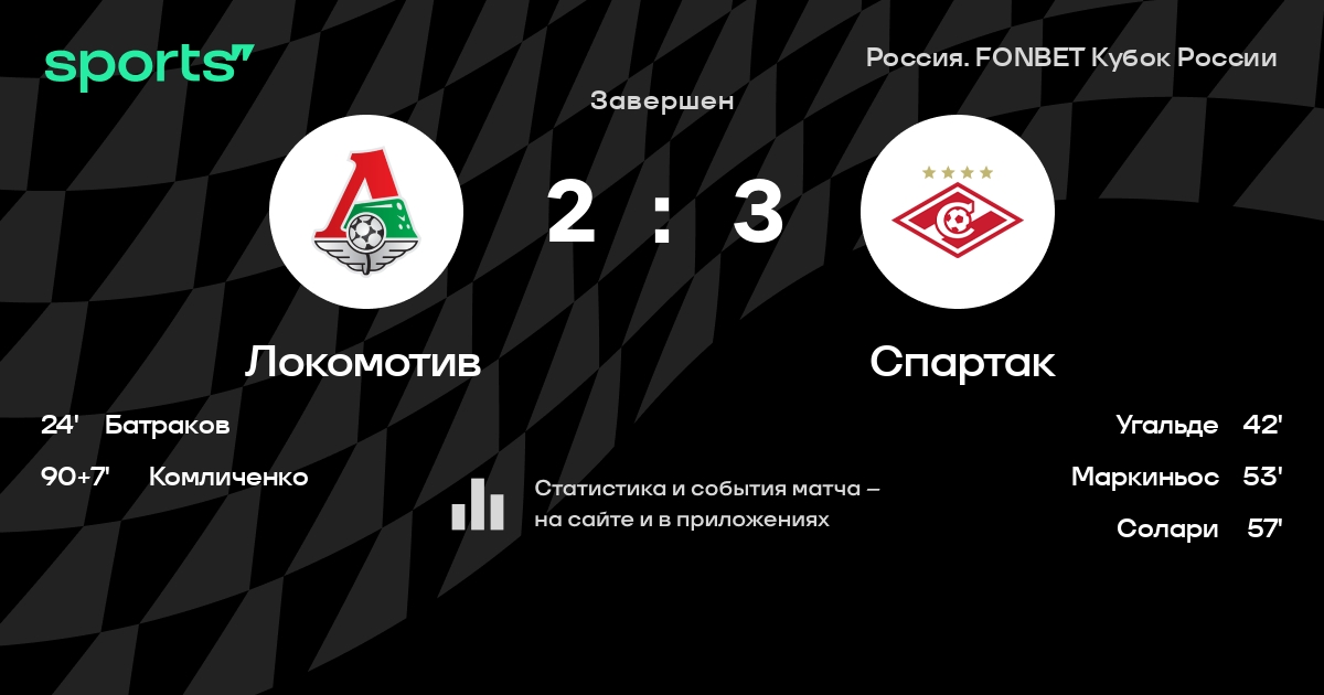 Локомотив – Спартак: Спартак побеждает в 3 последних очных матчах в турнире «FONBET Кубок России»