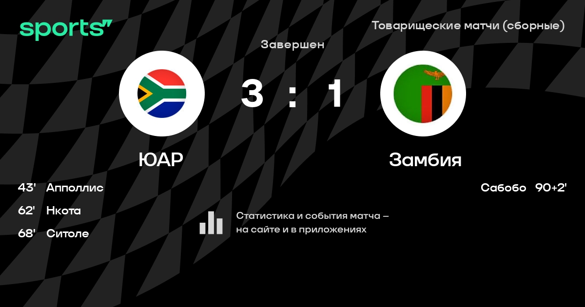 Товарищеский матч: шансы ЮАР – Замбия победу в товарищеском матче