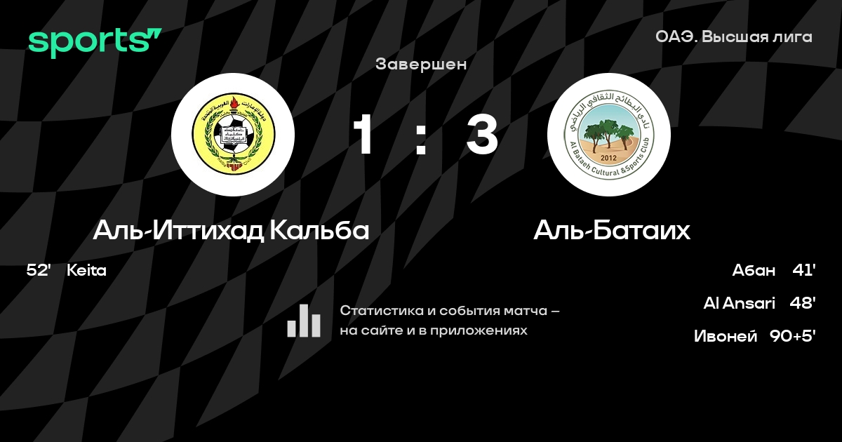 Аль-Иттихад Кальба – Аль-Батаих: Аль-Иттихад Кальба не пропускает в 3 последних матчах против этого соперника
