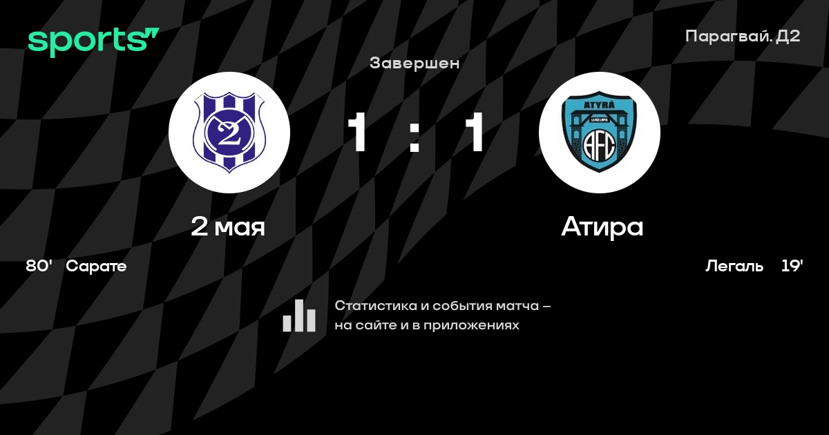 Результат прошлой игры в турнире «Сегунда»: Pastoreo – 2 мая 0:1. После 25 туров 2 мая набирает 49 очков и занимает 2 место в турнире. Лучший бомбардир команды – F. Cáceres: он забил 9 в 24 матчах. 2 мая побеждает в 3 последних матчах в рамках турнира «Сегунда». 2 мая имеет лучшую разницу мячей в турнире – 19. В 4 последних матчах в турнире «Сегунда» 2 мая обязательно забивает. В последних 5 играх 2 мая забивает 8 голов. В последних 5 играх 2 мая пропускает 4 голов.