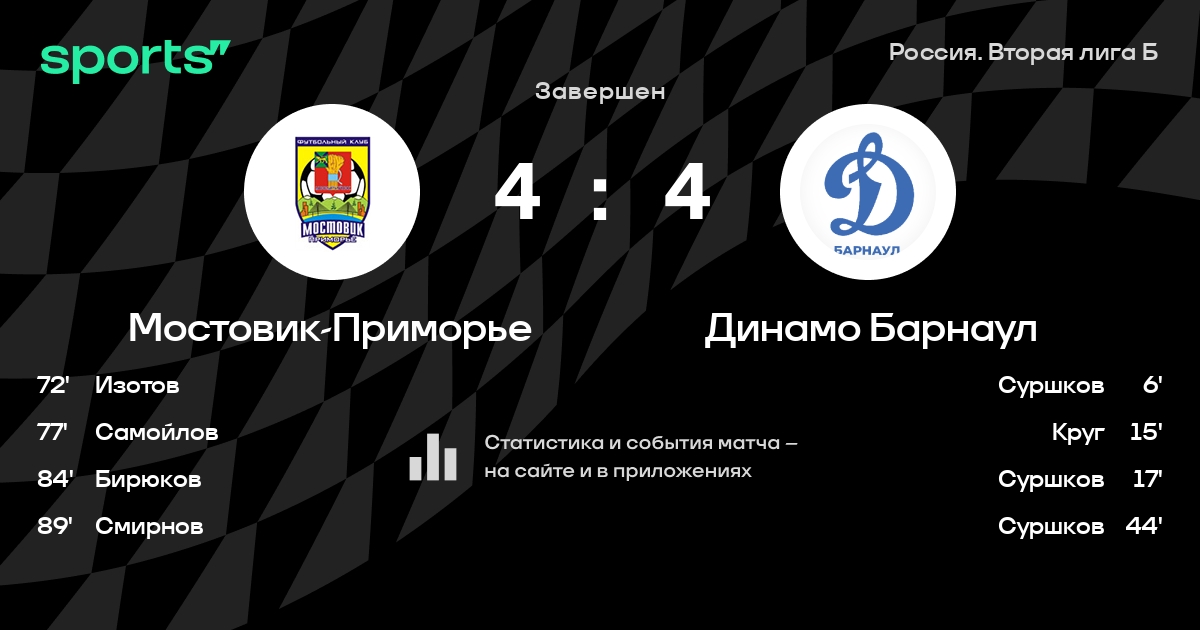 Трансляция Мостовик-Приморье - Динамо Барнаул