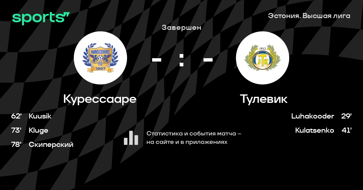 Кютт - Kluge, Saar, Rajaver, Tovstik, Aava - Laul, Tovstik, Kuusik - Skiperskiy, PukkЗапасные: Hansen, Azarov, Валмас, Лахт