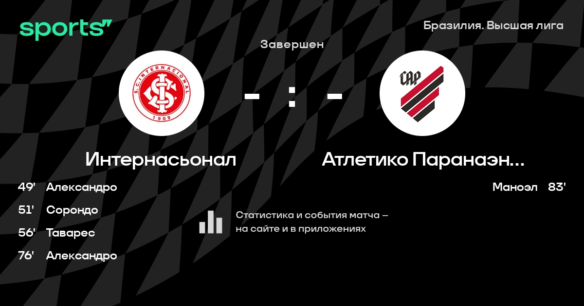 Трансляция Интернасьонал - Атлетико Паранаэнсе