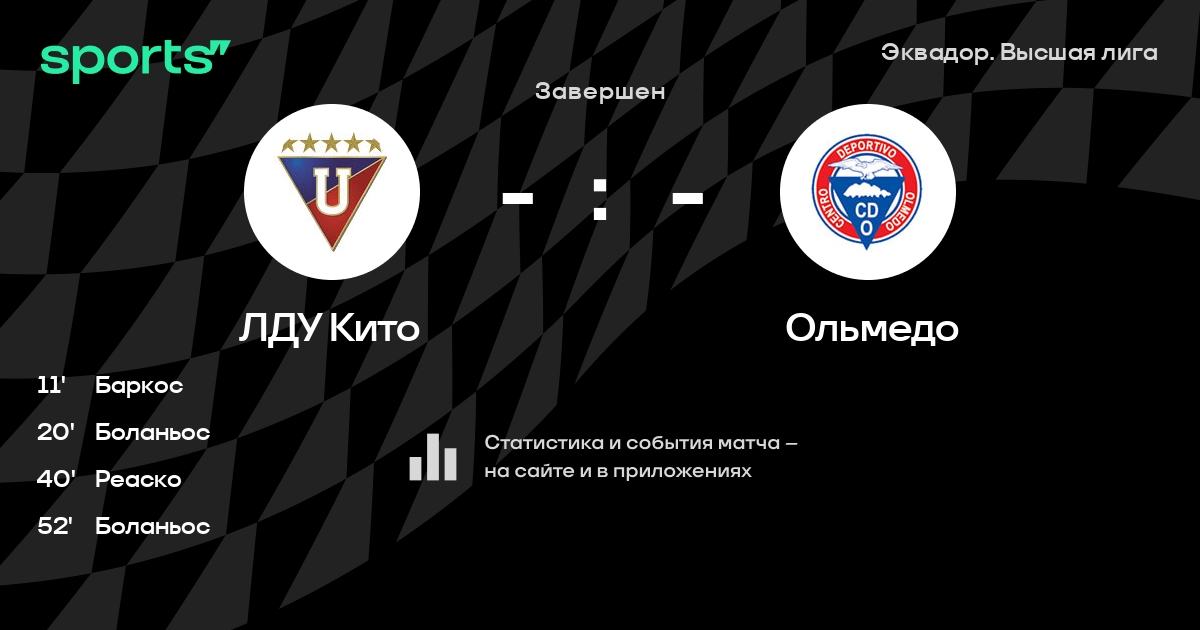 Домингес - Ganchozo Santana, Де Ла Крус, Гуагуа, Кальдерон, Реаско, Espínola Oviedo - Уррутия - Сальгейро, Боланьос, БаркосЗапасные: Севальос, Valencia Murillo, Araujo Ogonaga, Чеме, Martínez Sevilla, Эступиньян