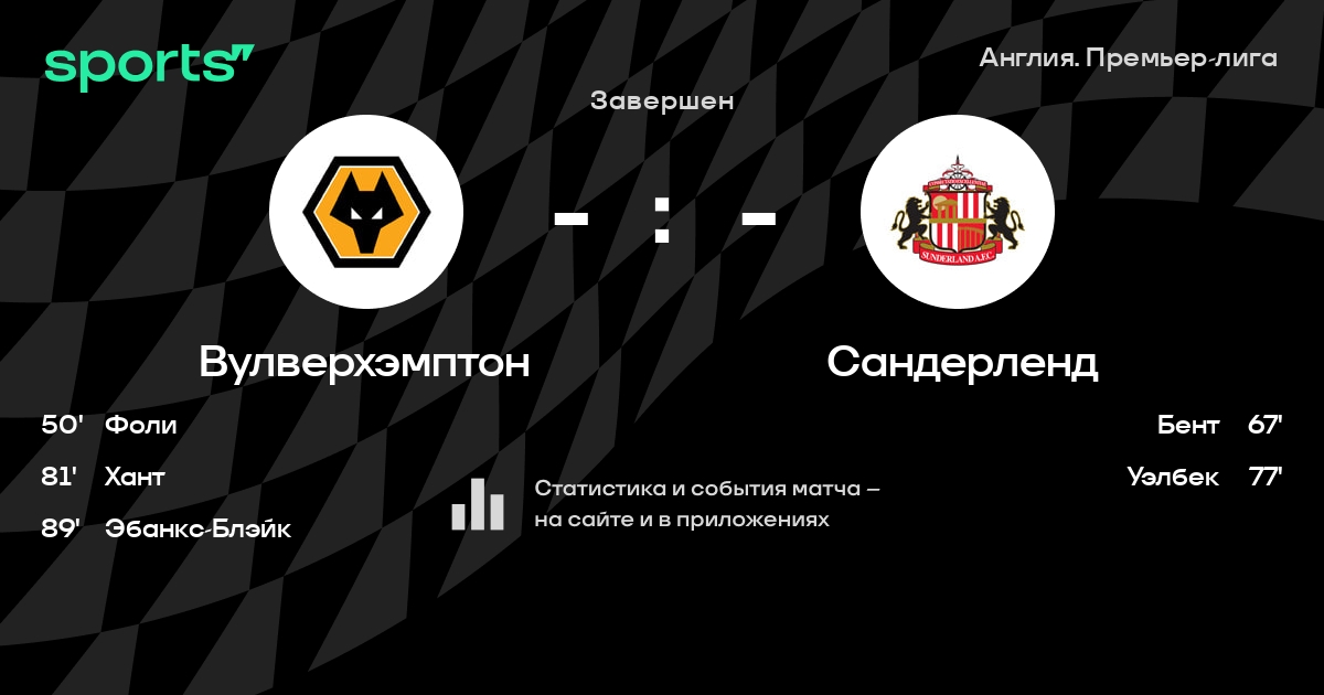 Трансляция Вулверхэмптон - Сандерленд