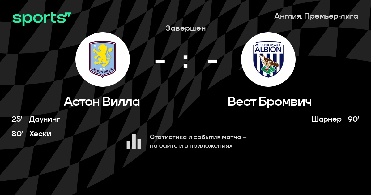 Фридель - Лихай, Уорнок, Коллинз, Куэльяр, Янг - Олбрайтон, Даунинг, Бэннан, Хогг - ХескиЗапасные: Гьюзан, Данн, Пирес, Херд, Рео-Кокер, Карью