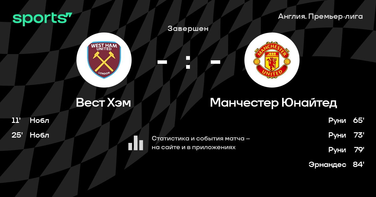 Трансляция Вест Хэм - Манчестер Юнайтед