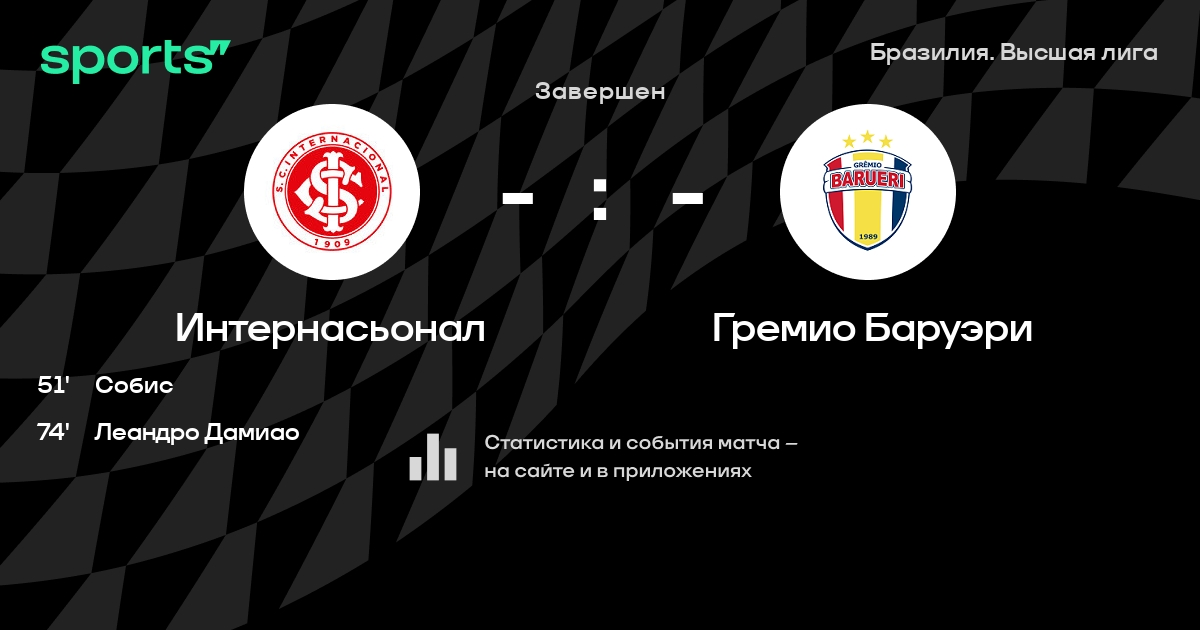 Чемпионат Бразилии. 32-й тур. «Интернасьонал» уступил «Сан-Паулу», «Фламенго» проиграл «Баруери»
