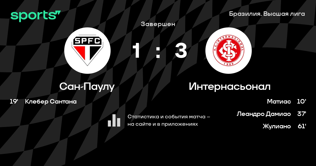 Чемпионат Бразилии. 32-й тур. «Интернасьонал» уступил «Сан-Паулу», «Фламенго» проиграл «Баруери»